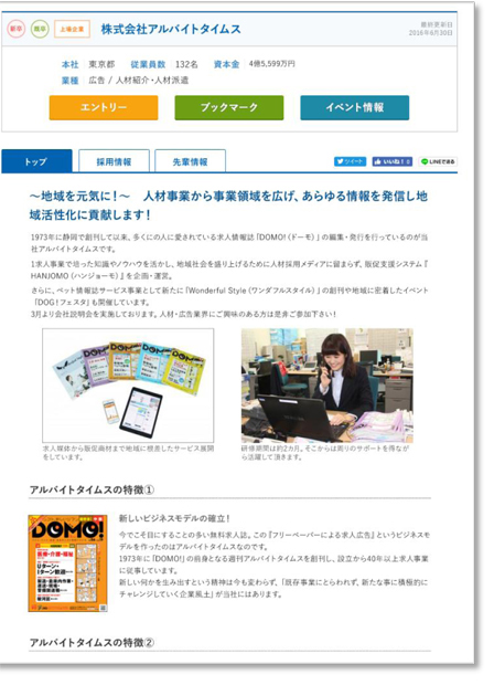 基本コースで、採用に必要な 情報発信からエントリー受付管理はもちろん、会社説明会などの告知から 受付応募者管理まででき、安価で効率的な採用活動ができます。 インターンシップ情報や既卒・第二新卒の募集もご掲載いただけます。